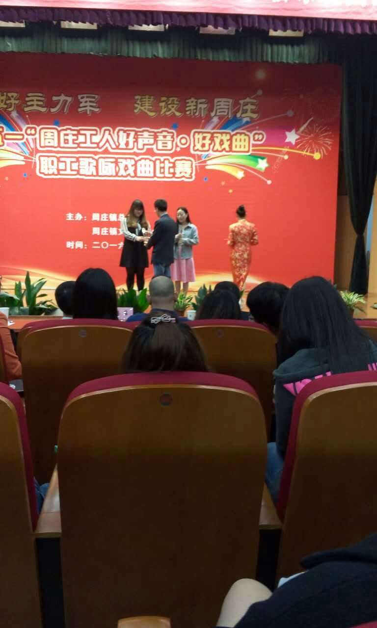 4月25日下午,周莊鎮(zhèn)行政審批中心禮堂人聲鼎沸,座無虛席。由周莊鎮(zhèn)總工會、周莊鎮(zhèn)文化服務中心主辦的迎五一“周莊工人好聲音•好戲曲”職工歌詠戲曲比賽正在這里舉行。我司選送參賽職工以良好的素質形象,優(yōu)異的比賽風格,給在場的人們留下了深刻的印象。我司質量部員工季艷的《瀏陽河》將一股濃郁的“民歌風”帶到了全場,那和諧的和聲,優(yōu)美的旋律讓人沉醉其間,博得了滿堂喝彩,最終以較大優(yōu)勢贏得了比賽第一名。我司財務部曹紅霞的《最初的夢想》悠揚婉轉,純潔動聽,也贏得了良好贊譽。